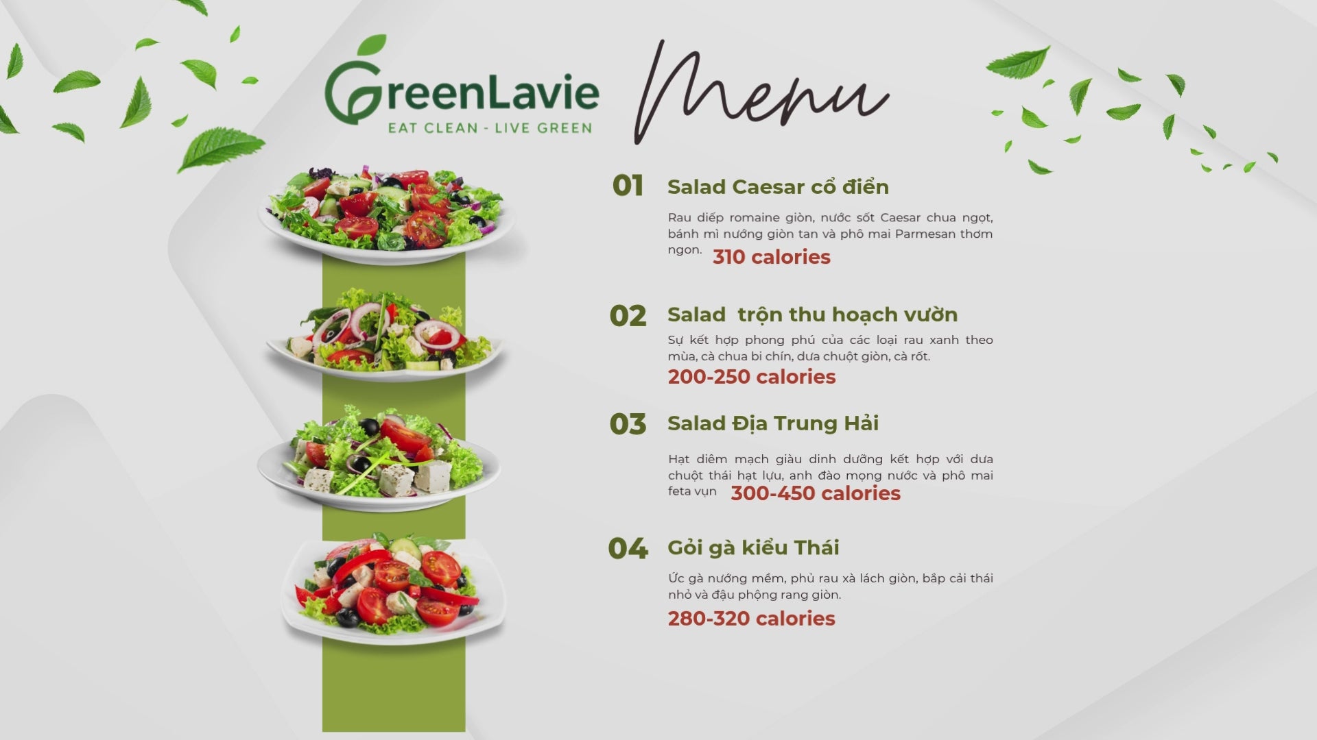 Chúng tôi không chỉ mang đến một lối sống xanh giữa nhịp sống hiện đại, mà còn đồng hành cùng bạn trong từng bữa ăn, với lượng calo được tính toán hợp lý cho cơ thể.